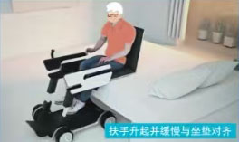 | 当床旋转至与床架呈90°时 ,按下床架扶手上的自动接驳键,移位机可与床架自动接驳,按下分离键后,床、椅分离,移位机可在普通轮椅使用。 When the bed rotates to a 90 ° angle with the bed frame, press the automatic connection button on the armrest of the bed frame, and the transfer machine can automatically connect with the bed frame. After pressing the separation button, the bed and chair are separated, and the transfer machine can be used in a regular wheelchair. | |
